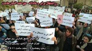 Kadınların ataerkil, kapitalist ve diÄŸer hükümdarlıklardan kurtulmalarına giden yol uzun. Bu nedenle, İran’da kadın hakları eylemcilerinin bir araya gelmesi, sokaklarda haklarımız konusunda ısrar etmek , eÅŸitsizliÄŸe, adaletsizliÄŸe ve özellikle İran işçi piyasasında kadınların olumsuz durumuna olan itirazımızı protesto etmek ve dile getirmek için bir kez daha bir araya gelmekteyiz.